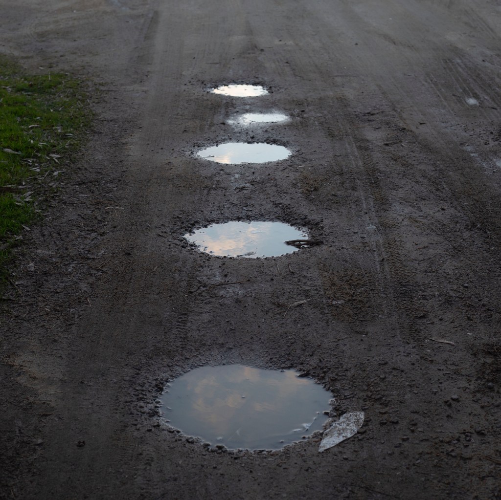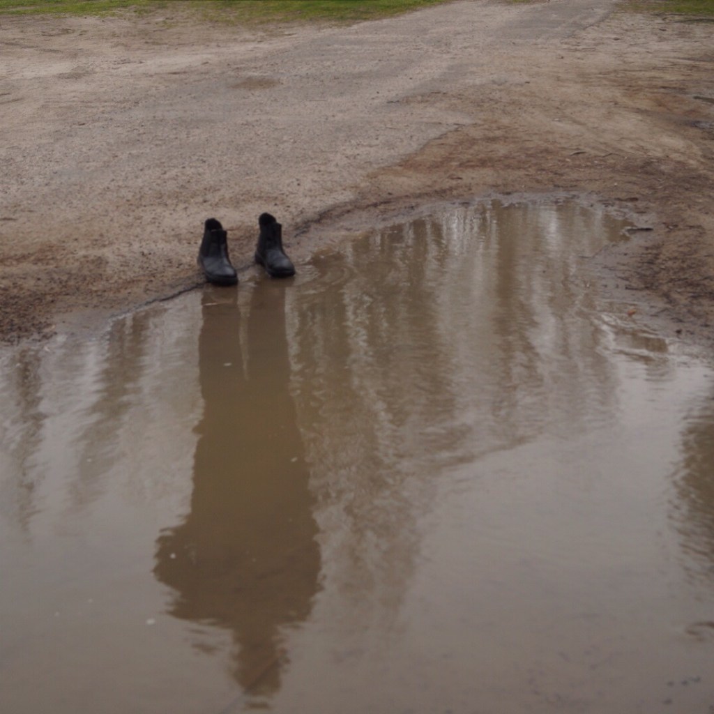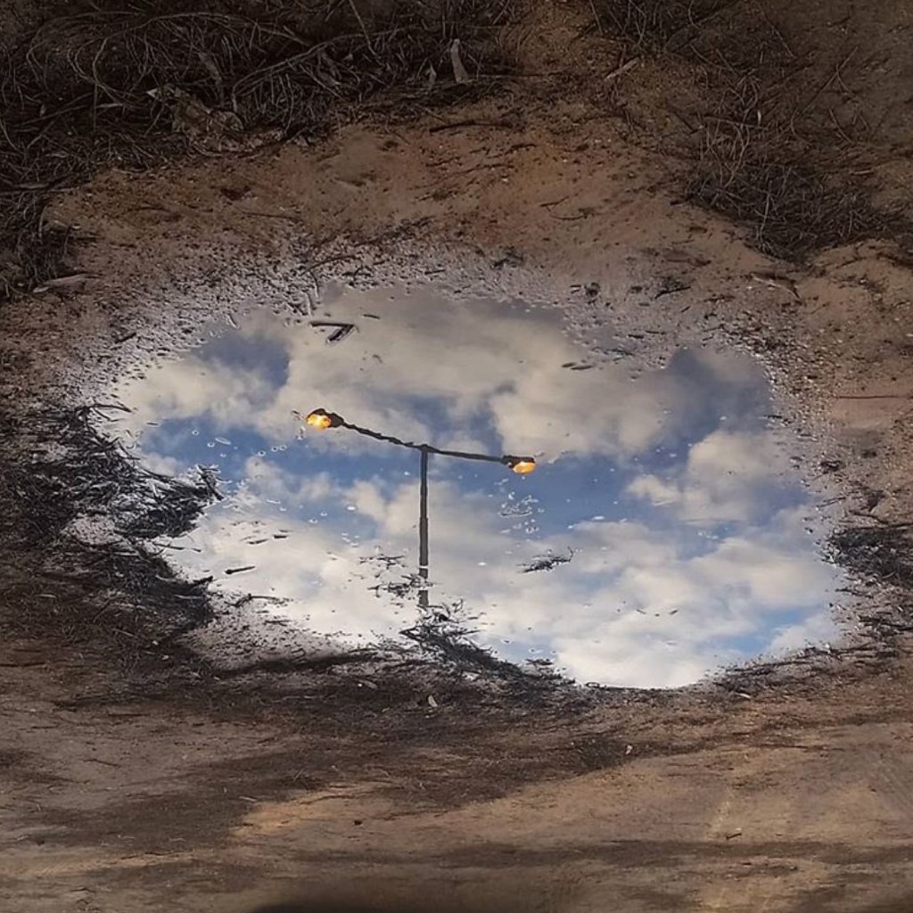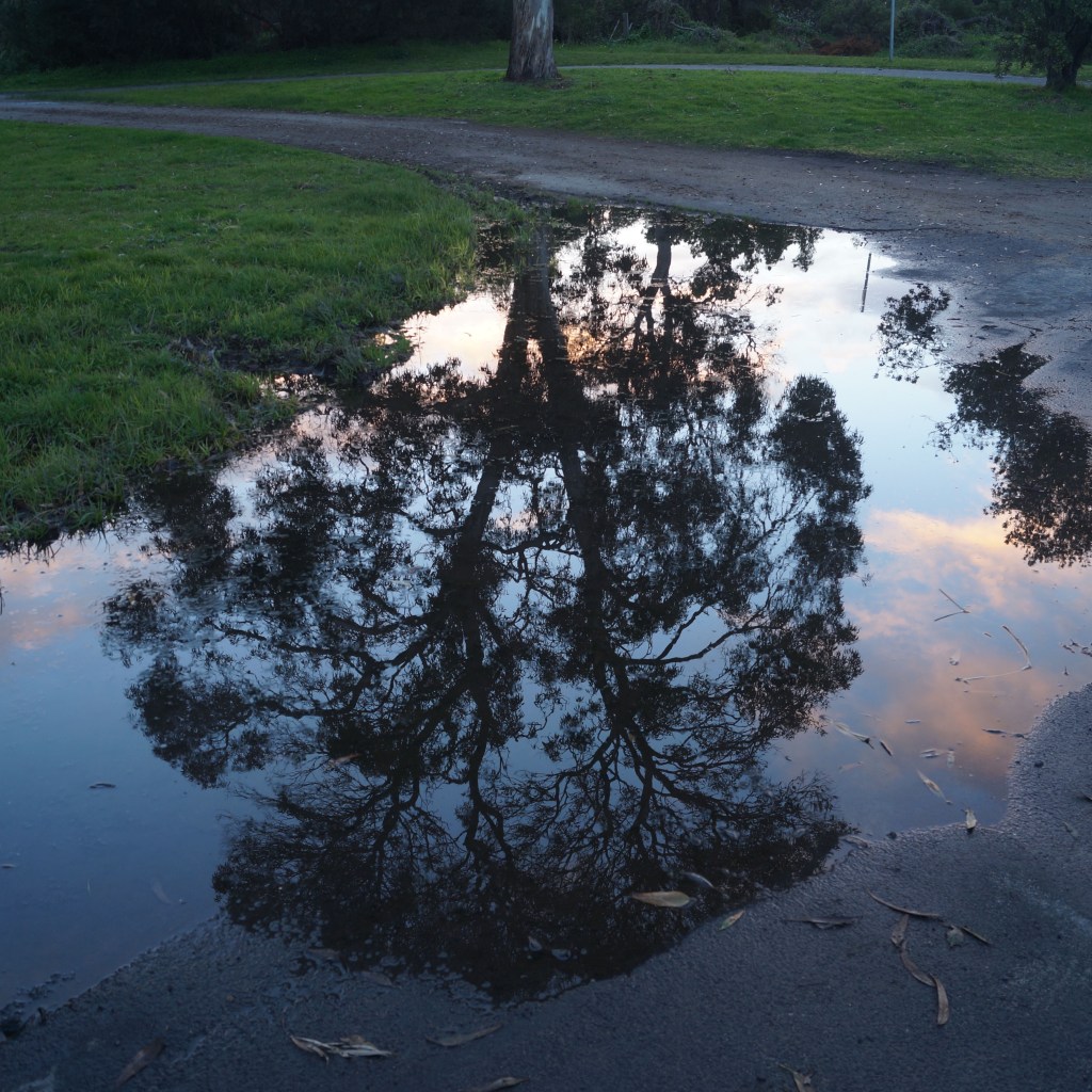 Puddles lay waiting, a mirror of the sky,