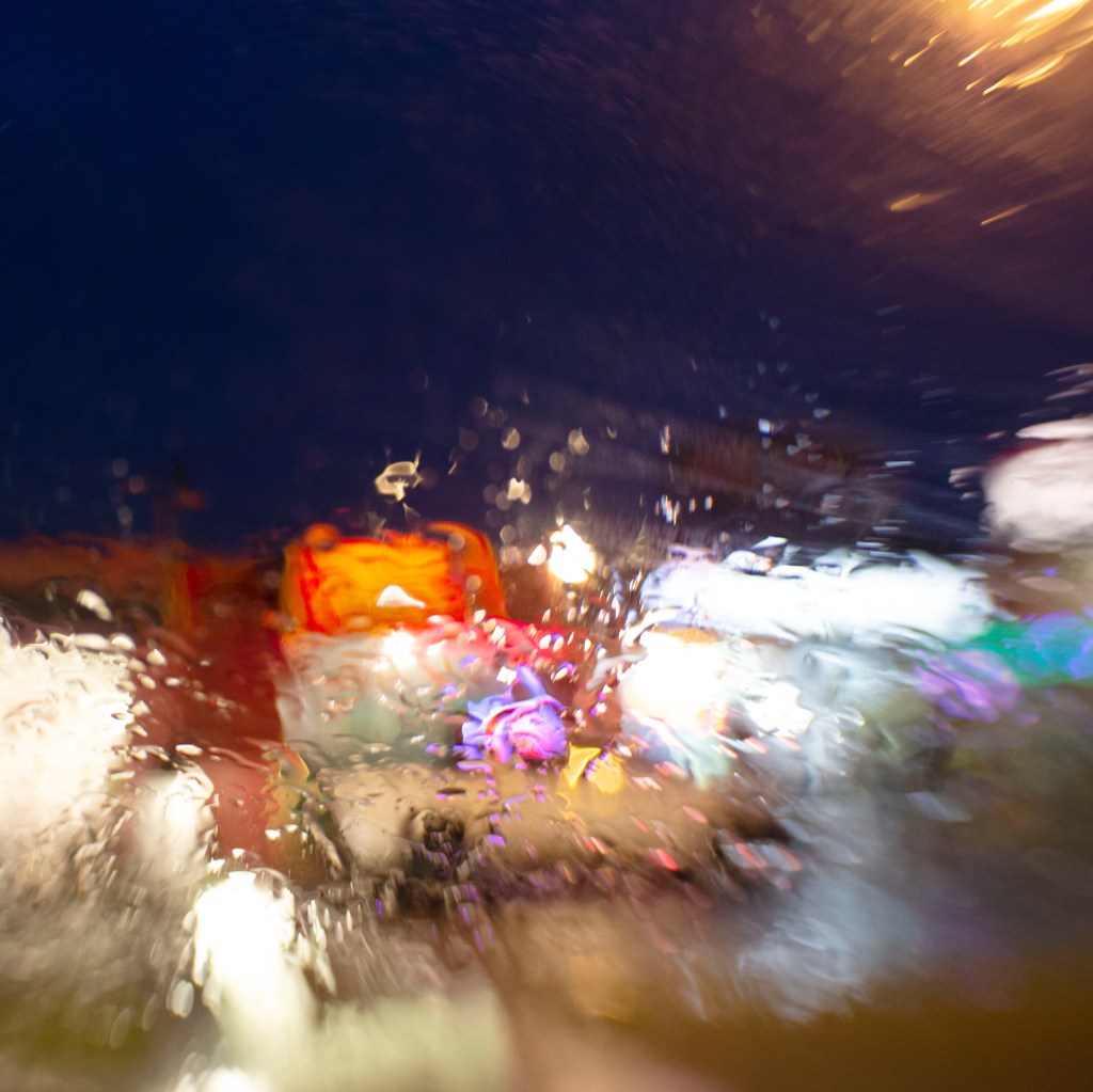 Raindrops descend, meeting earth’s awaiting hue.